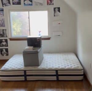 The master bedroom was sparsely furnished and primarily used for storage at the time of the investigation. The room contained a desk, a mattress positioned on the floor, a small bench, and several personal items stored along the perimeter. Despite its minimal setup, the space carried a noticeably heavy atmosphere, consistent with observations made during the initial walkthrough.