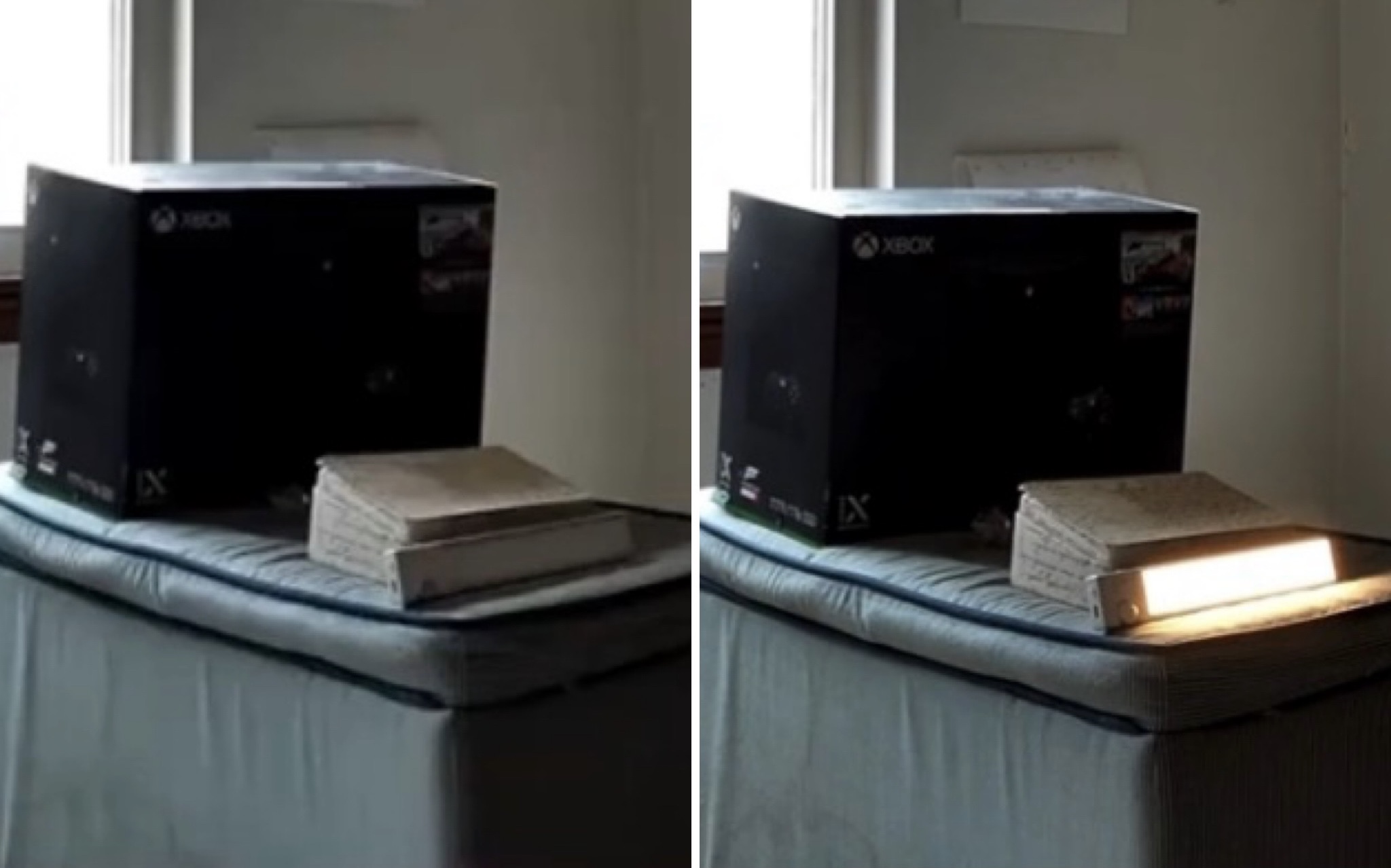 A stationary video camera was positioned to monitor two illuminated cat balls placed on the mattress, along with a motion‑sensored light intended to register movement within the room. An audio recorder was left running continuously to capture any ambient or unexplained sounds, and a Phasma Box was also placed in the room to passively record potential communication. All devices were left unattended, as investigators were actively working from another area of the home during this time.