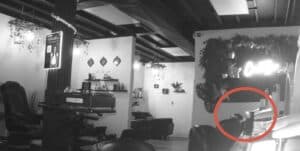 • Occurring early on here, just after we set out our equipment and began to explain our process to the owner and employees, a shadow moved out of the Utility area and toward the equipment as if to test it out. This was captured on the trail camera and pulled out via screen capture.