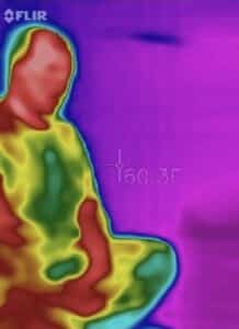 • The next FLIR image shows Derrick right after he felt nauseous and a very cold spot appearing on his chest.