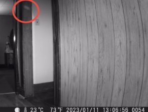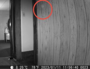 The kitchen served as our equipment room, and while we didn’t explicitly investigate this space, we kept careful tabs on it throughout the night. The room carried an energy that was impossible to ignore. According to reports, someone is said to reside in the bathroom within the kitchen space, and we observed activity that suggested their presence. The bathroom door opened and moved on its own, not just once but twice. While the door openings themselves were not captured on camera, one instance of the door shifting after being opened was recorded on our devices.