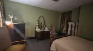 The Sitting Room of the Ross House, better known as Alfred’s Room, carries a reputation distinct from the other spaces in the home. This is the room most often associated with Alfred Zaccigini, who has made himself known so directly to visitors, mainly women. This sensation was so strong that a visiting  medium once sketched his likeness during a session. That drawing now hangs in the very space where he is believed to reside, giving the room an even stronger identity as his. Furnished both simply and historically appropriately, this area is not physically imposing, the energy here often feels unmistakably watchful, as though Alfred himself is still guarding the space.