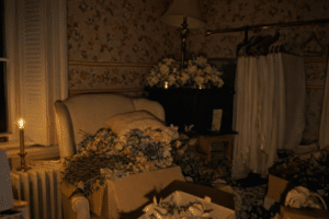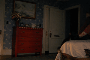 The physical experiences also began in the Carriage House when we heard footsteps and Julia felt like someone was standing right behind her. There were footsteps and the creaking of stairs right outside the Ballroom leading toward the Attic doorway where scratches and knocks have been heard in the past and even earlier in our investigation. The Monday Room showed evidence of someone pacing back and forth thanks to our overnight camera that we ran as we slept.