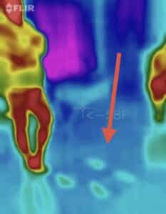 • In the FLIR thermal imaging camera, we noticed what appeared to be a pair of legs standing next to Dan after he moved closer to Julia.