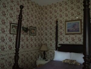 One of the more well-known paranormal locations in the bed and breakfast, where footsteps and voices have been heard and Mr. Ramsey has been said to be seen here, going in and out of the room on occasion, is situated next to the Monday Room in the second-floor hallway. This room holds a bed dated from the early 1800’s and shows its age with the old pegs for the woven horsehair mattresses. The majority of the history here is unknown, aside for the fact that it existed back in the mining era and was not a part of the addition.