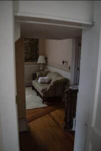 While spending the evening exploring the mansion and its’ grounds, there were numerous locations which were intriguing based on past stories and even new stories told by the volunteers to the bed and breakfast. The most active locations during our investigation included the Carriage House, the Ballroom, and the Monday Room which ultimately was the most active area where we received the most communication and felt the most energy and activity. Each spot seemed to hold its’ own particular energy, and most areas felt warm and welcoming. The only spot and moment that felt a little off was in the Monday Room when Dan felt ill and as if he was not wanted in the room. The feeling lifted once he left and, upon his return into the room later on that night, he did not feel that sensation again.