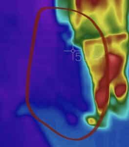 We completed an EVP session here, not thinking we would come up with much, and according to the recorder, we did not. However, looking back through some of our photographs, the FLIR thermal images in particular, we noticed what looked like the four legs of a dog!