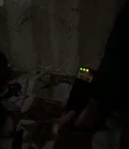 • Before moving back upstairs to regroup, Derrick and Gabe asked if they could help them and if they would like that. At :09, seemingly not through the Spirit Box and very faint, we captured “Yes.”