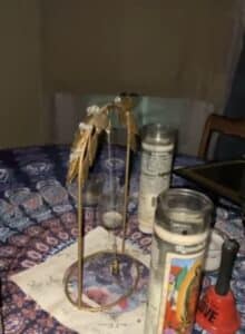 This open area is sandwiched between the Tarp Room and the creepy Doll Room. Its name comes from the circular table surrounded by chairs all centered around a pendulum and candles obviously set up to allow for seances. On the opposite side of the room was another pendulum. Both pendulums were swinging slightly all night and not at all the next morning.