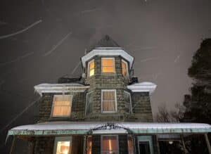 While our night started off with a bang (literally), our activity at the Wildwood Sanitarium seemed to wear out as we stayed. We do believe that we experienced quite a few odd moments and paranormal occurrences throughout our night at the old stone mansion. Early on, between our tour and set up, we felt different sensations and heavier air in certain areas of the house like the cold Tarp Room and the Record Room on the third floor. We also experienced some odd things like light anomalies during our set up and our lid slamming shut on us in the entry area where we stored our equipment.