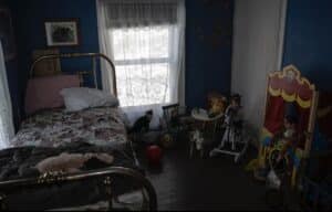 On the second floor, the first room on the right, the aptly named Blue Room gained its name from the dark blue color of the walls. This room’s history isn’t completely known but it was utilized during both the holistic treatments timeframe as well as the tuberculosis hospital. While there have not been any definitive records referencing this room, the name “Tommy” has been recorded here numerous times. This has become so common of an occurrence that guests have brought toys and dolls to leave in remembrance of “Tommy” or whatever child spirit may still linger here. Stories have also referenced the toys going off randomly or moving on their own.