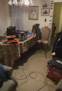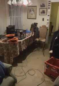 As all the activity seemed to push us to begin our investigation, we began our night “officially” with the closest room to our equipment, which ultimately was the Blue Room. During our time here, we recorded quite a decent amount of K2 activity as the lights would go off when we asked the spirits to move close to it. While we do believe we held our live feed camera too close to the device, it seemed as though there was still something nearby as the meter was alerted on the other side of the room. As we experienced this other worldly activity through the K2 meter, we heard footsteps across the hallway in the Tarp Room and Séance Room. Naturally, we followed these noises into the next area.