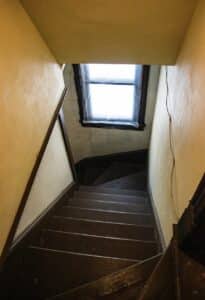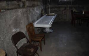 This is one of the areas that has been noted for the shadow man cutting through from the Tarp Room up the stairs on the opposite end of the room. Some seances, that have been noted to take place here, have led to sounds like knocks and footsteps coming from all ends of the room. The door to the stairs has been heard creaking open and the pendulums have been reported to swing heavily on occasion.